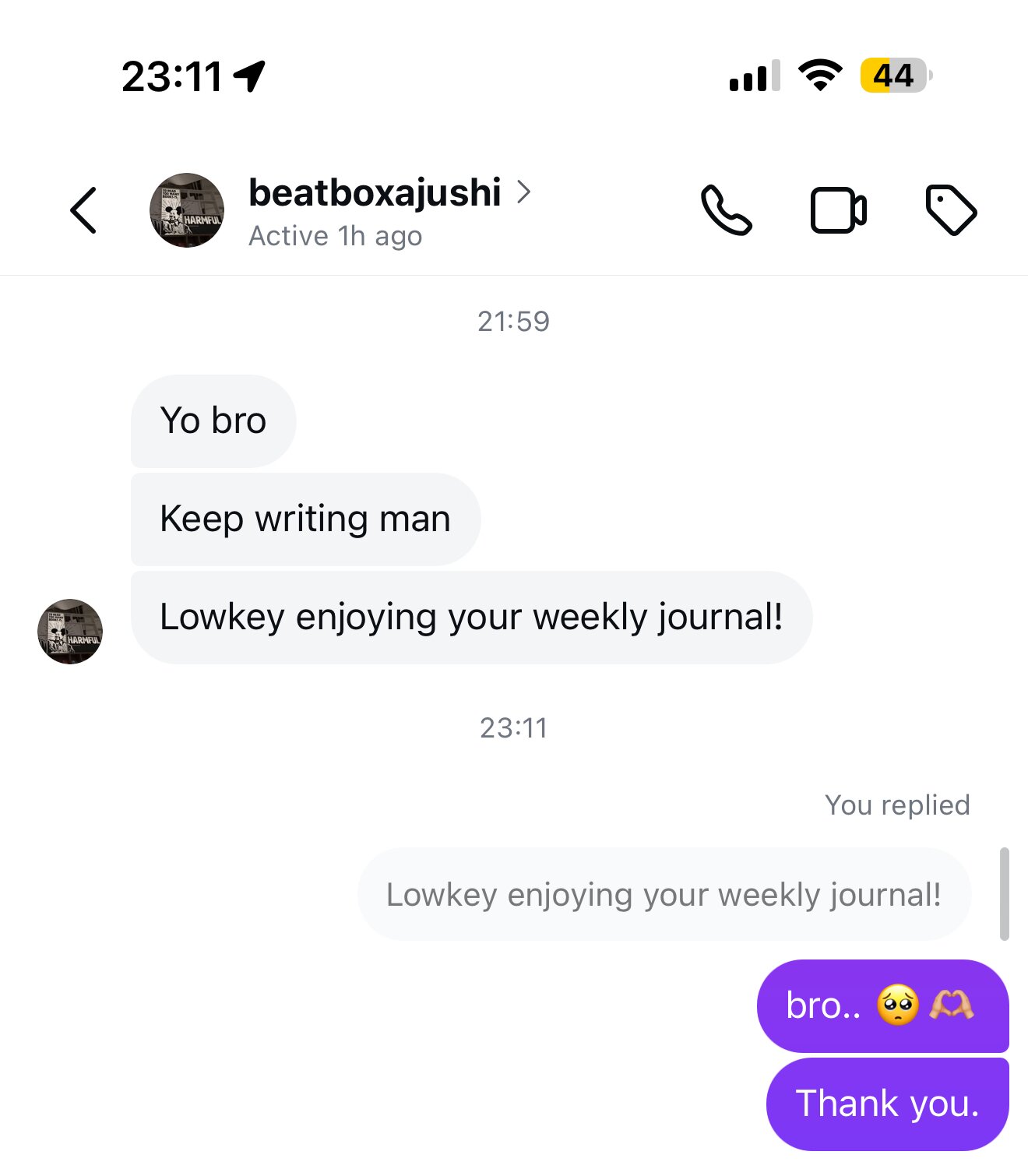 那天,我就突然想说在我 ig 也分享一下我的 blog,反正也没差,就随缘,谁要看就看。结果,好久没联系的 vicuz 突然发了我的几句话:
