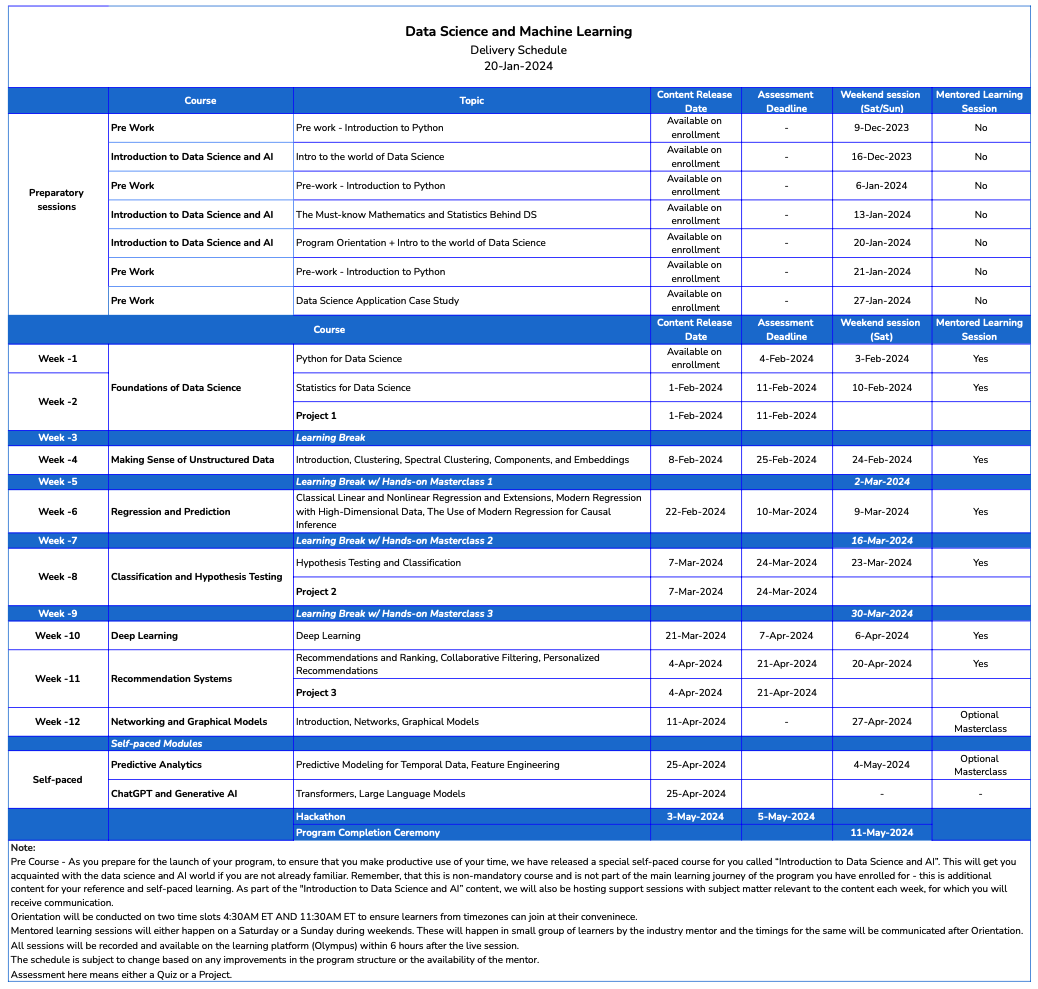 This program not only aims to enhance your skills but also prepares you to lead in the ever-evolving field of data science and machine learning. As you step into this journey, remember that your instructors and peers are your support network, ready to assist and guide you towards your career aspirations.